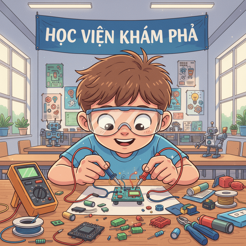 Ba mẹ có biết, đằng sau những thiết bị điện tử phức tạp hàng ngày là những nguyên lý khoa học vô cùng thú vị mà trẻ có thể dễ dàng tiếp cận? Tại Học Viện Khám Phá, chúng mình tin rằng cách tốt nhất để trẻ yêu thích khoa học là để trẻ tự tay chạm vào nó. Dự án “Tự tay chế tạo máy thử điện mini” không chỉ là một bài tập thủ công đơn thuần, mà là cánh cửa mở ra thế giới vật lý kỳ diệu cho các kỹ sư nhí.