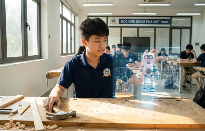 Hành trình thay đổi của một giáo viên truyền thống sang dạy STEM tại Học Viện Khám Phá: Vượt nỗi sợ công nghệ, làm chủ 5E, PBL & kiến tạo lớp học hạnh phúc.